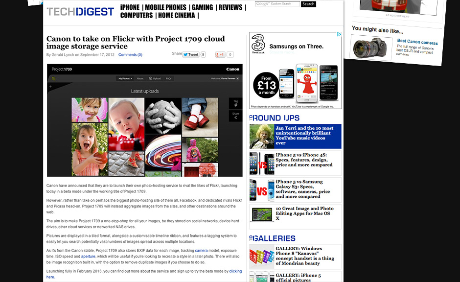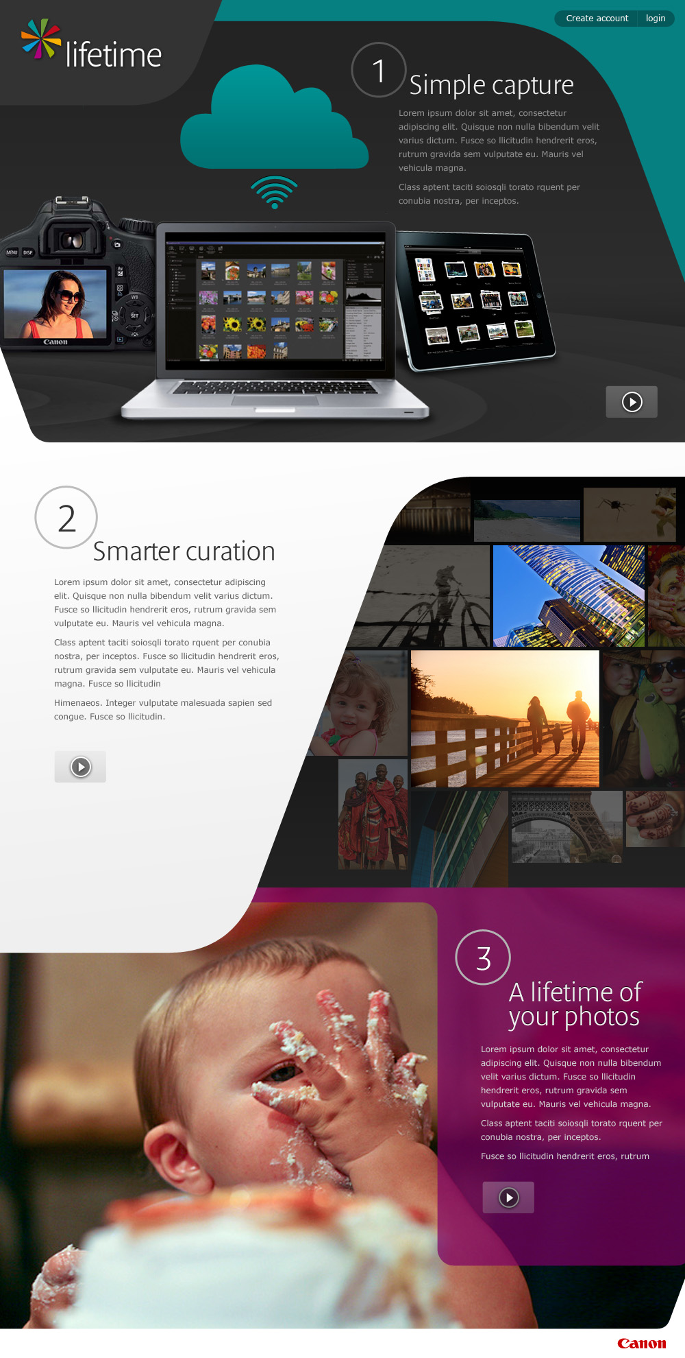 A digital first for Canon, the platform is a safe home to organise and manage a photo collection. Allowing users to store, access and share their photography on social networks. It was the first time a product was designed outside of Canon’s Japan head office.